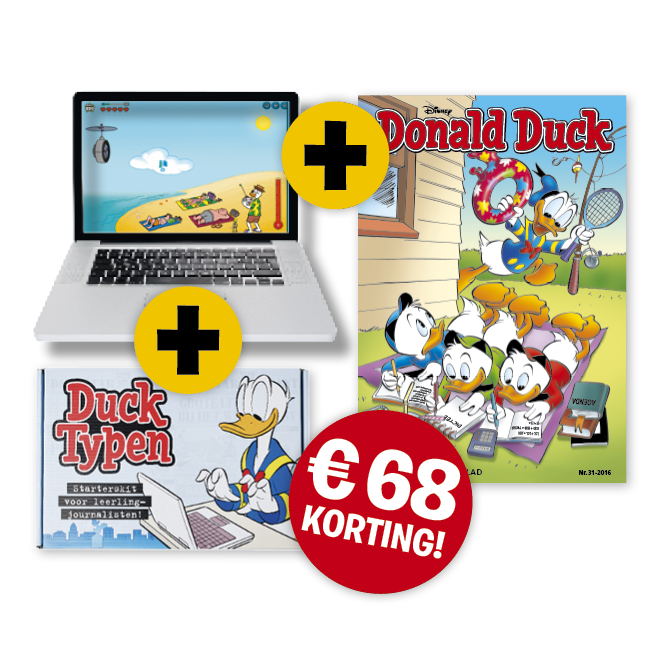 DuckTypen met vele extra's én een abonnement op Donald Duck Weekblad (56x). Van € 28,65 voor maar € 18 per maand! BESTEL